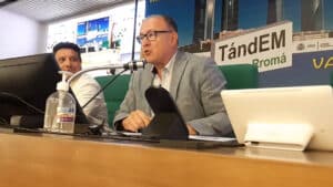 En su intervención, el Director General señaló que, los TándEM, tienen el valor añadido de ser un programa de política activa de empleo fundamentado en la filosofía del “hacer aprendiendo y aprender haciendo”. Así mismo, mencionó que, el nombre del salón, rinde homenaje a José María Pérez, promotor y fundador de las Escuelas Taller y Casas de Oficios en 1985; que constituyen el origen y fundamento de Programa TándEM; habiendo recuperado con ello “Una buena práctica”